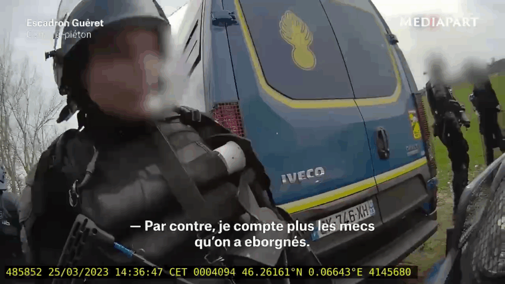 Image extraite d’une vidéo publiée par Mediapart à partir des caméras piétons des gendarmes